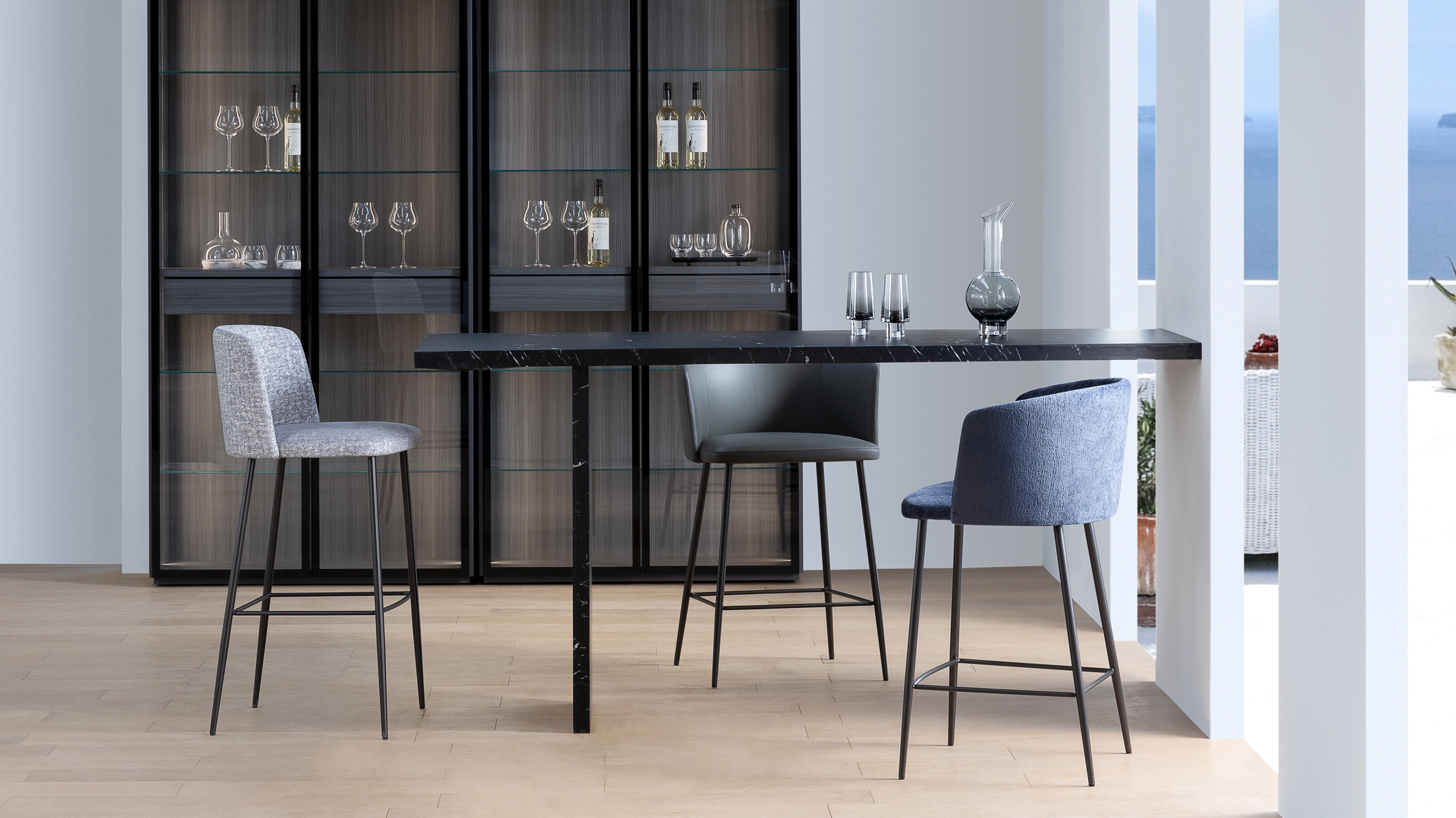 不同款式调配出不同感受,可轻轻摇曳扶手的餐椅,身姿高挑的吧椅,各自传递出生活的别样情趣。